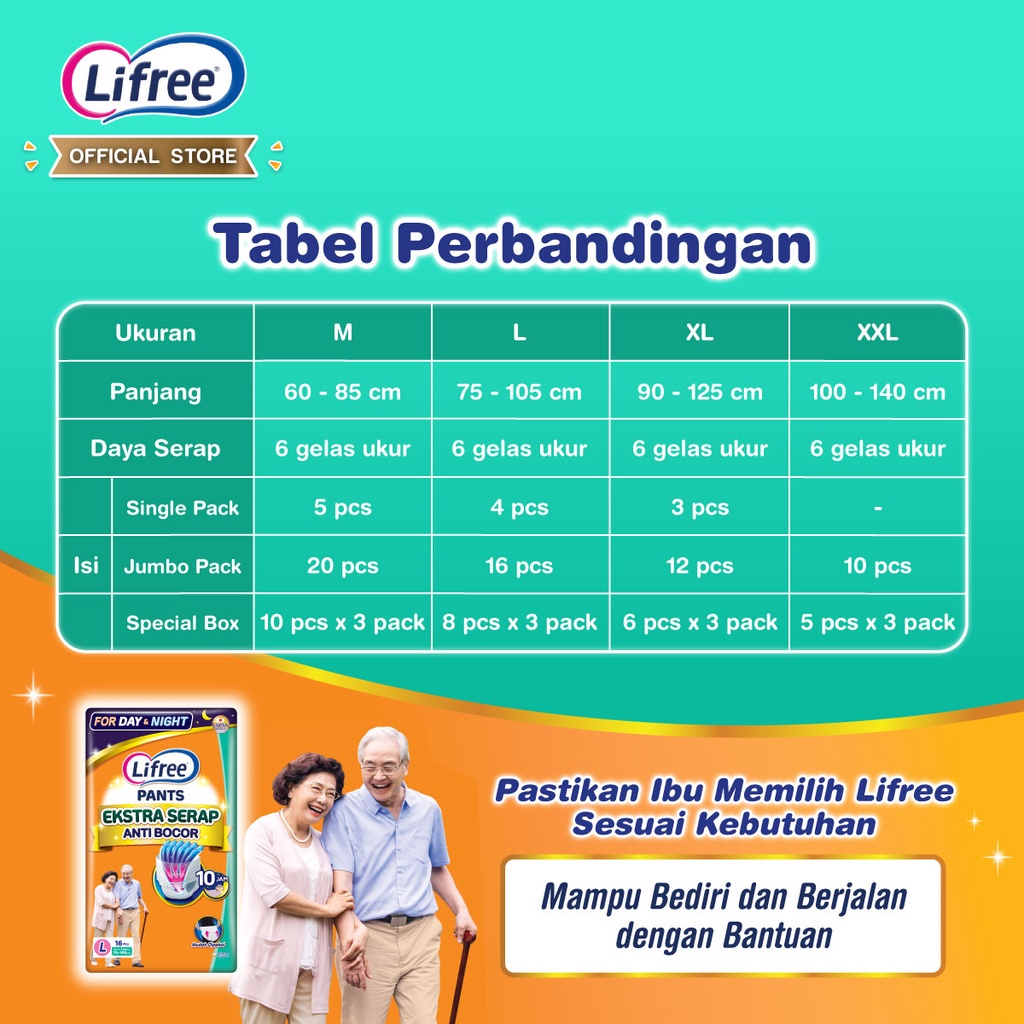 Lifree Popok Pants Celana EXTRA SERAP Murah Berkualitas Untuk Dewasa/Melahirkan/Lansia. Harga per Pack Ukuran M 10/L8/L16/XL6/XXL5