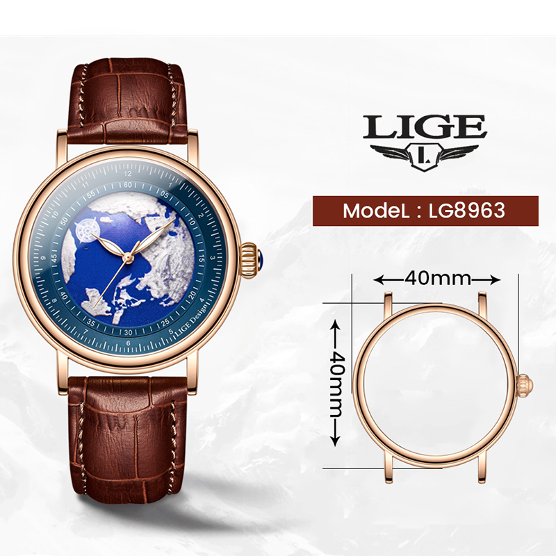 Detail LIGE Mode Jam tangan pria anti air Santai sederhanaTali kulit Wrist Watch + Box