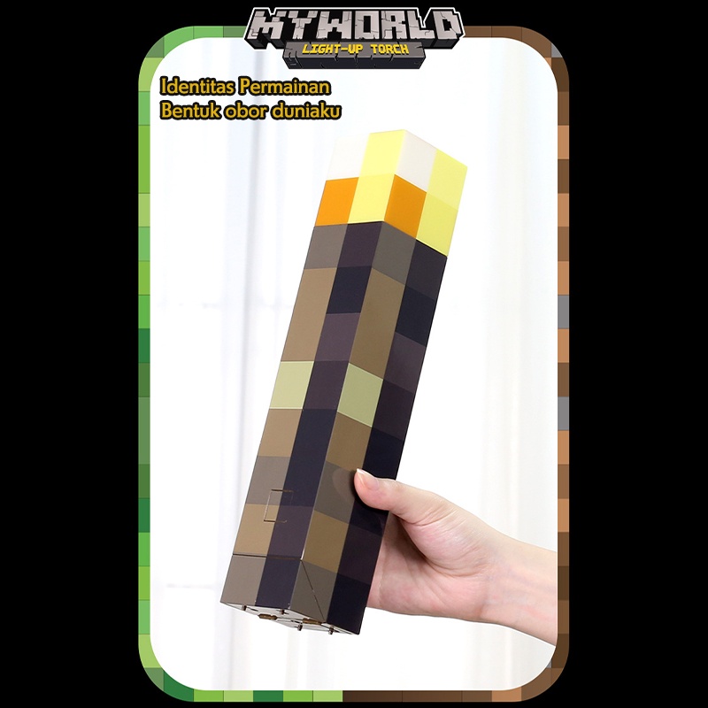 β DESKRIPSI / Description: 1. Minecraft Light Up Torch 1) Torch atau obor dalam permainan minecraft memegang element yang sangat penting, baik sebagai penerang, dekorasi maupun strategi. 2) Warna sesuai gambar, dengan warna lampu putih krem kehijauan. 2. Cara menggunakan : 1) Pencet tombol untuk on / off untuk menyalakan/mematikan. 2) Jika ingin dipasang di dinding, copot baut 2 pcs di dekat pembuka batre, nantu ada lubang untuk mount di dinding. 3. Plastik ramah lingkungan, bebas bau, tahan aus dan memiliki sentuhan halus. 4. Ada satu sudut yang bisa dibuka lalu digantung di dinding, nyaman digunakan. 5. Pencahayaan super terang, pengisian baterai, bentuk blok, jusk seperti obor. 6. Ringan dan portabel, mudah dibawa, cocok untuk berkemah, risiko eksplorasi dll.