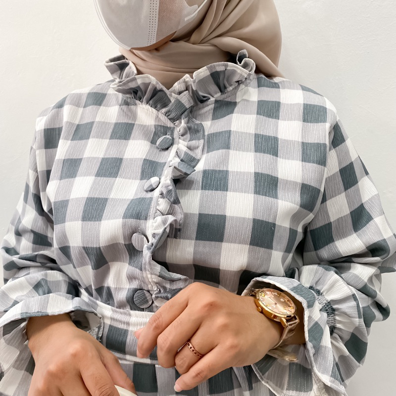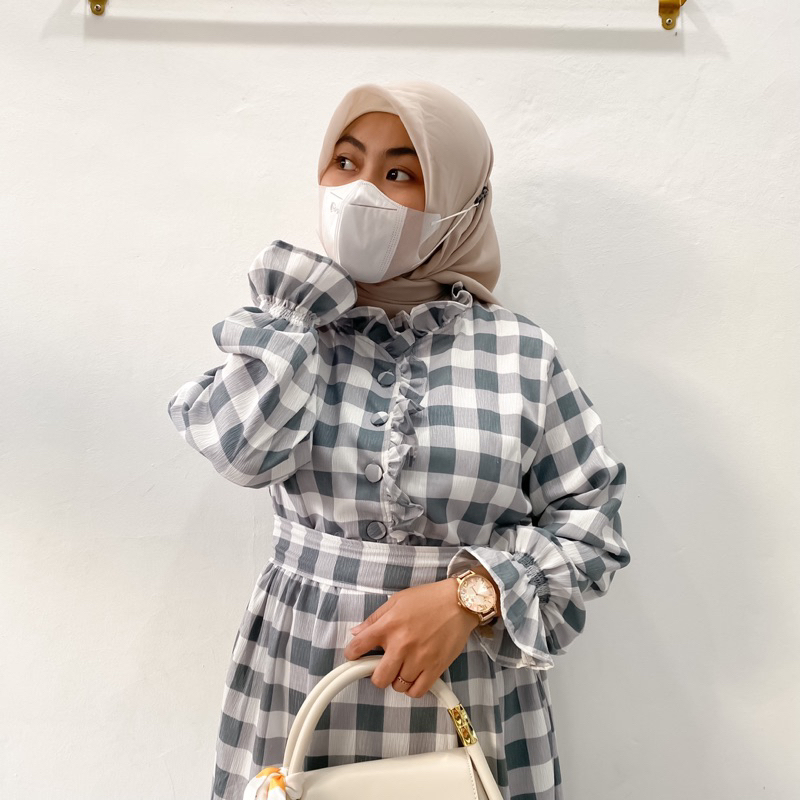 - Bahan : Katun Crinkle , tebel ya ga trawang - Aksen kancing bungkus busui friendly dan ada variasi ruflles yang manis banget - Ada Saku - Tangan Karet model smoke jadi Wudhu Friendly