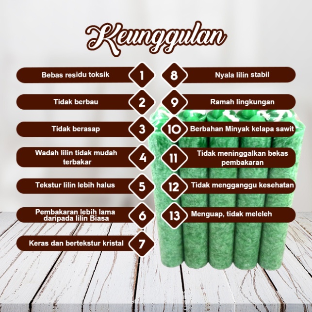 - Nyala lilin lebih lama dari lilin Biasa (3x lebih lama)