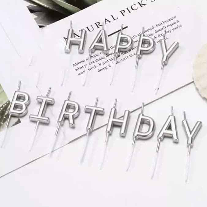 ~Lilin happy birthday ~Warna Silver ~Didesain Huruf ~Dapat dijadikan sebagai perlengkapan pesta ulang tahun ataupun acara lainnya