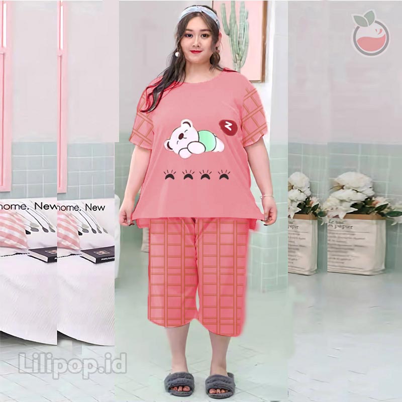 Detail Lilipop.id Baju Tidur Wanita Sleep Bear 3/4 Jumbo Celana Pendek XXXL Baby Doll Bahan Kaos