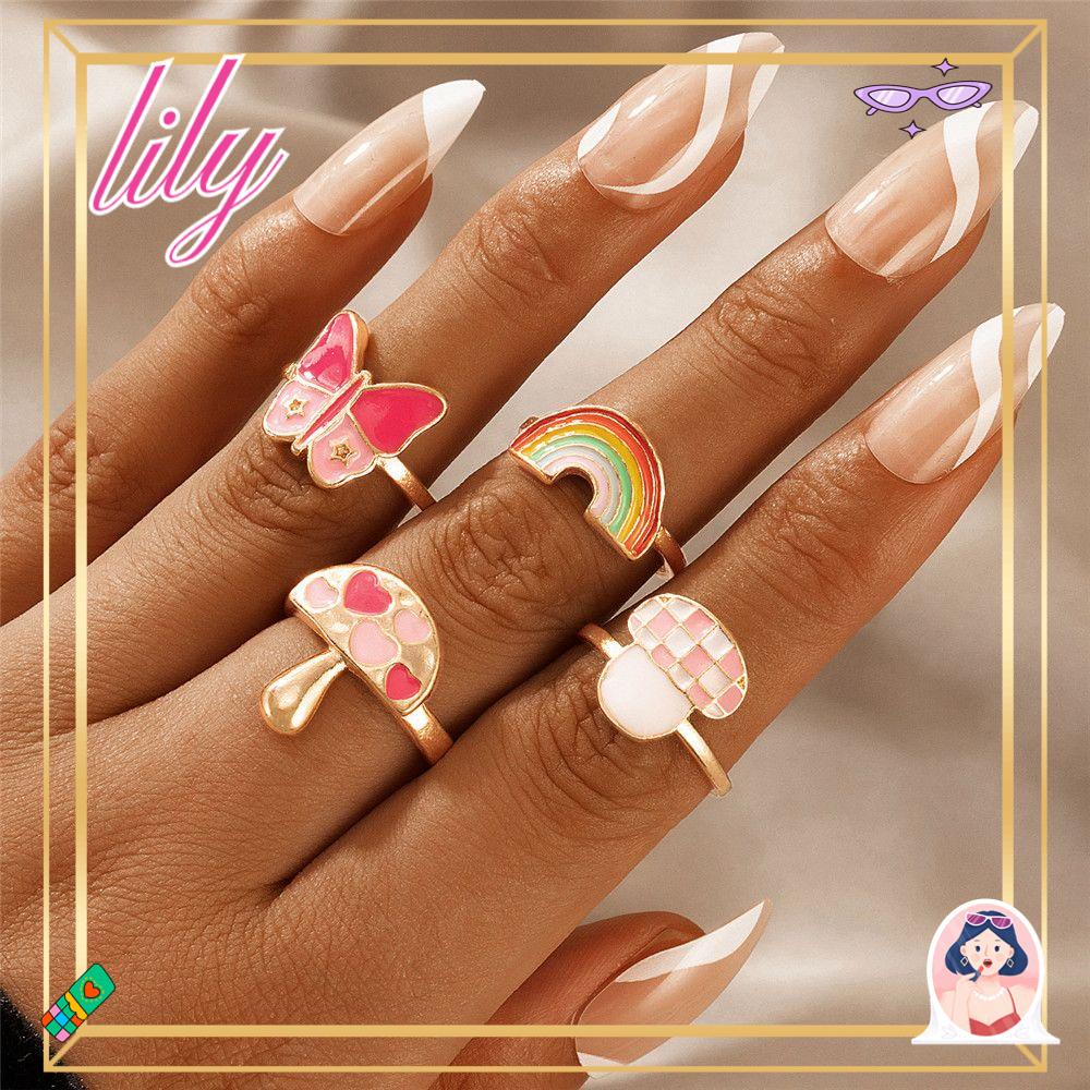 Detail Lily 4Pcs Cincin Jari Wanita Love Hati Bahan Akrilik Resin Enamel