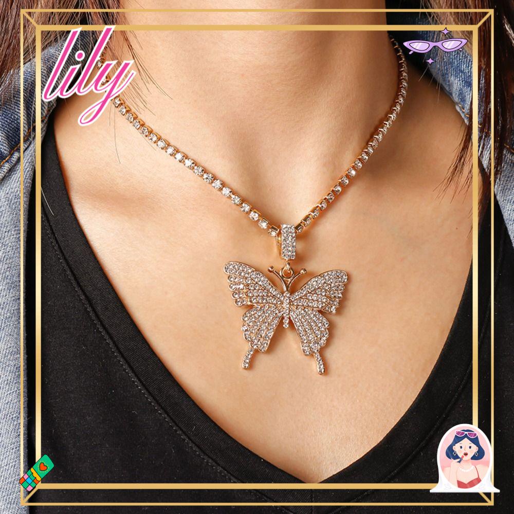 Daftar Kemasan: 1 * Kalung Kupu-kupu Liontin Kalung Klavikula Rantai Kalung Kalung Perhiasan Wanita Fashion Paduan Berlian Tertanam Penuh Berlian Indah Elegan