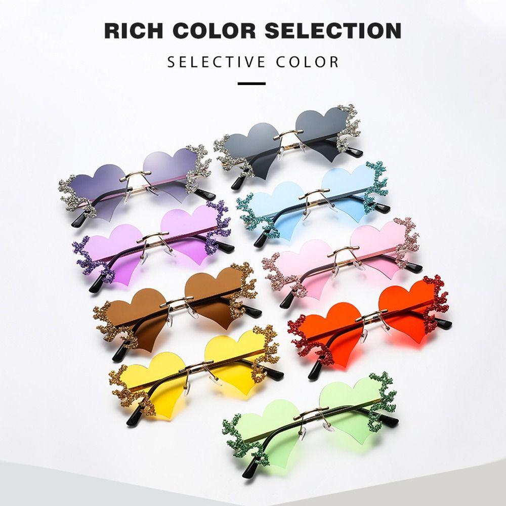 2. Perlu dicatat bahwa sedikit perbedaan warna harus dapat diterima karena cahaya dan layar. Kacamata Hitam Hati Api Kacamata Matahari Berbentuk Hati Rimless Bling Beach Shades Kacamata Pesta Halloween Kostum Aksesoris Lucu Keren Retro Trendi