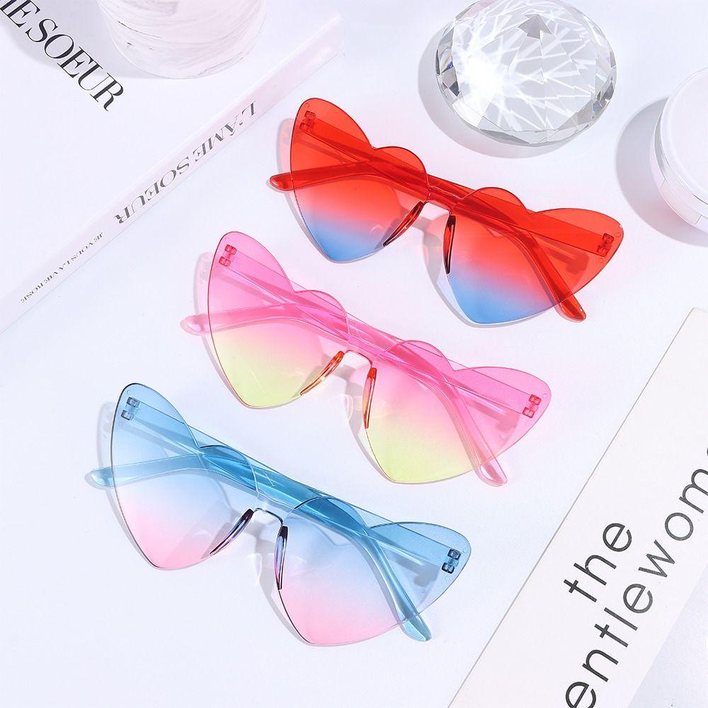 Aksesoris Fashion > Kacamata & Aksesoris > Kacamata Hitam > LILY Heart Shades, Kacamata Hitam Berbentuk Hati Warna-Warni, Fashion Lensa Gradasi Tanpa Bingkai Perlindungan UV400 Kacamata Matahari Trendi Untuk Wanita