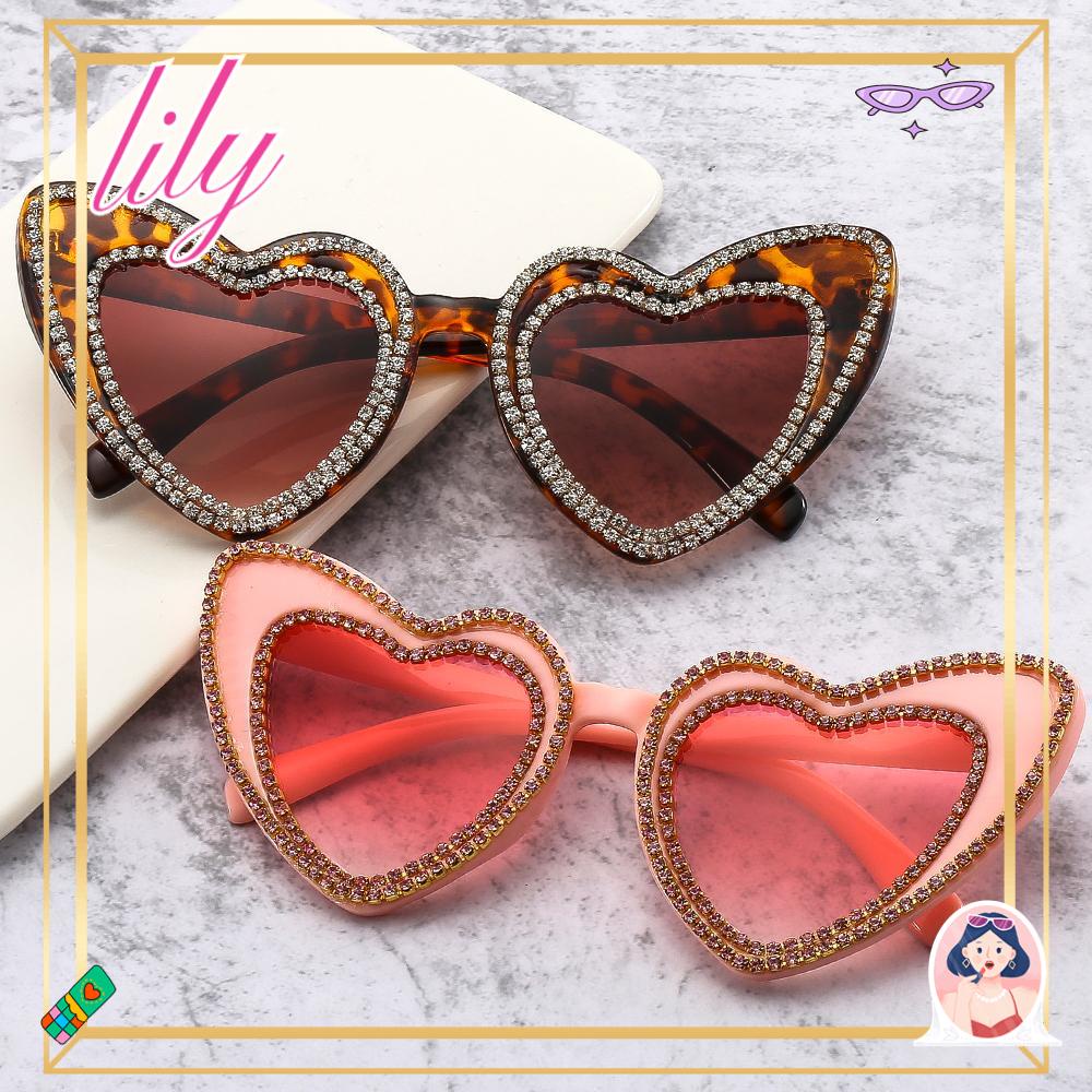 Detail Lily Heart Sunglasses Retro Shining Love Heart Ladies Eyewear Kacamata Hitam Untuk Wanita
