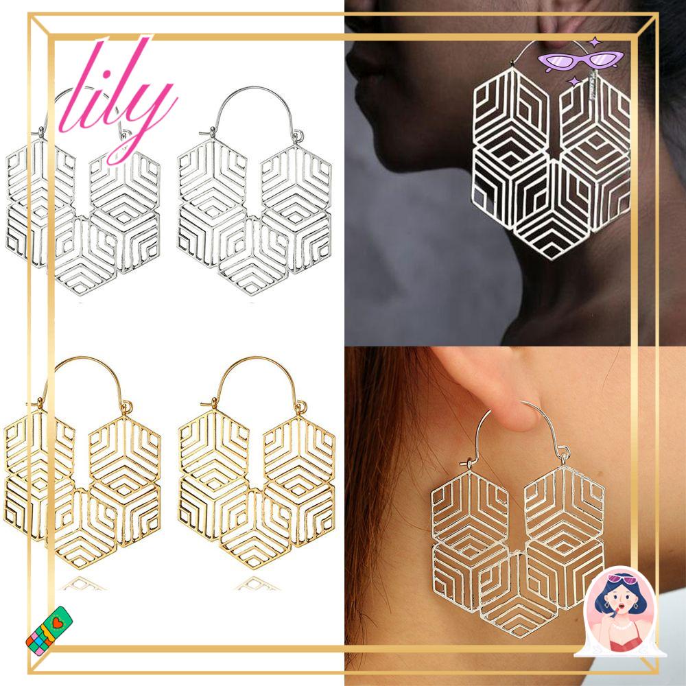 Detail Lily Hoop Earring Wanita Liontin Geometris Antik Menjuntai Drop