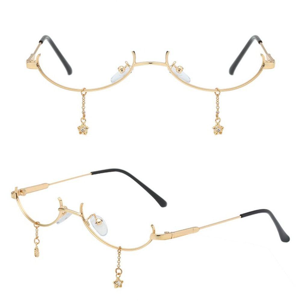 Mungkin ada sedikit perbedaan warna karena monitor, kamera atau faktor lain, silakan lihat item fisik. Kacamata Bingkai Bawah Setengah Bingkai Air Drop Tanpa Lensa Dekorasi Wanita Lucu Gadis Fashion Baru