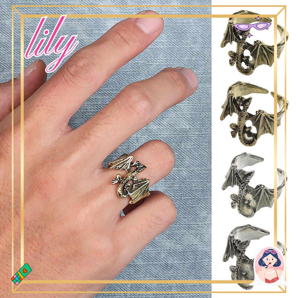 Detail Lily Noctilucent Naga Cincin Hadiah Halloween Punk Single Pria Hip Hop Pterosaur Ring