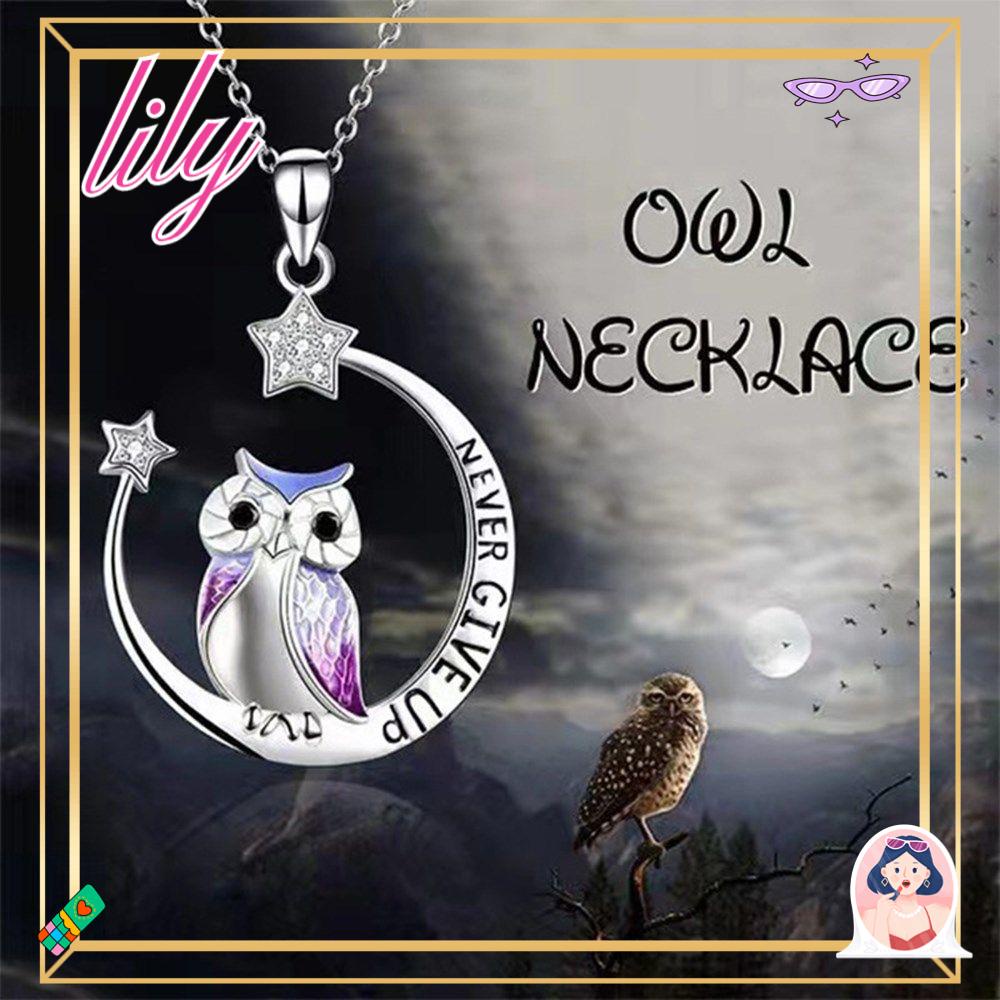 Aksesoris Fashion > Kalung > Kalung Lainnya > Lily Owl Liontin Kreatif Fashion Hadiah Anniversary Hewan Bulan Bintang Berlian Mengkilap I Love You Forever
