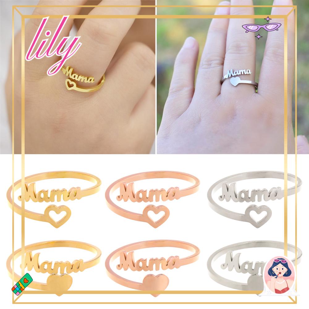 Detail Lily Populer Aksesoris MAMA Hati Cincin Aadjustable