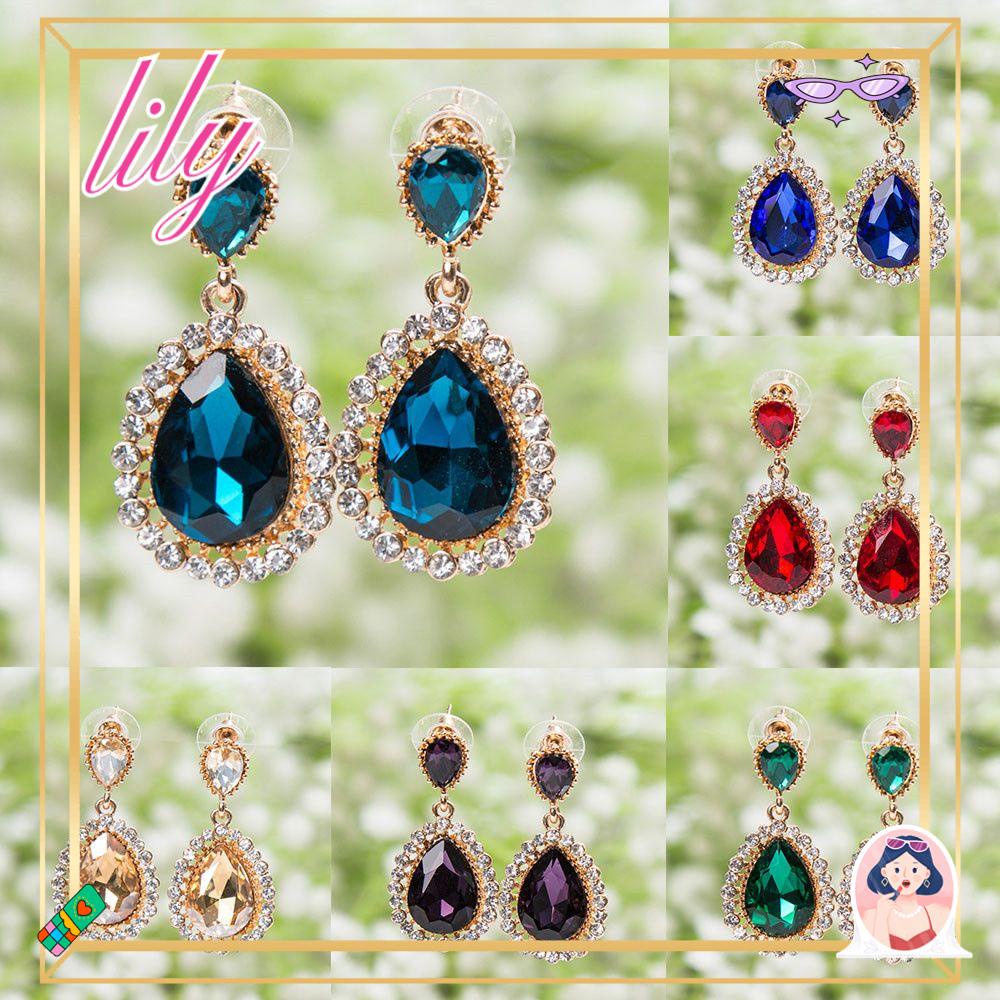 Detail Lily Water Drop Rhinestones Earrings Shiny Female Full Drilling Anting Panjang