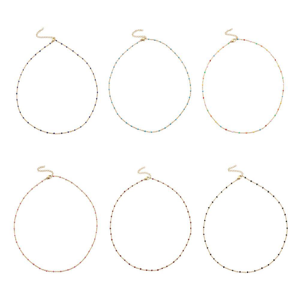 2.Karena perbedaan antara monitor dan kecerahan cahaya, warna sebenarnya dari item tersebut mungkin sedikit berbeda dari gambar yang ditampilkan Kalung Wanita Satelit Manik-manik Gelang Kabel Bola Rantai Choker Stainless Steel Warna Emas Enamel Perhiasan Fashion