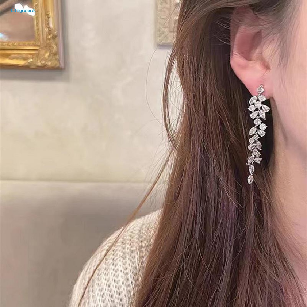Detail Lilyscent 1pasang Aksesoris Wanita Drop Earrings Fashion Aksesoris Bentuk Daun Hias Berlian Imitasi Rumbai Drop Earrings Glitter