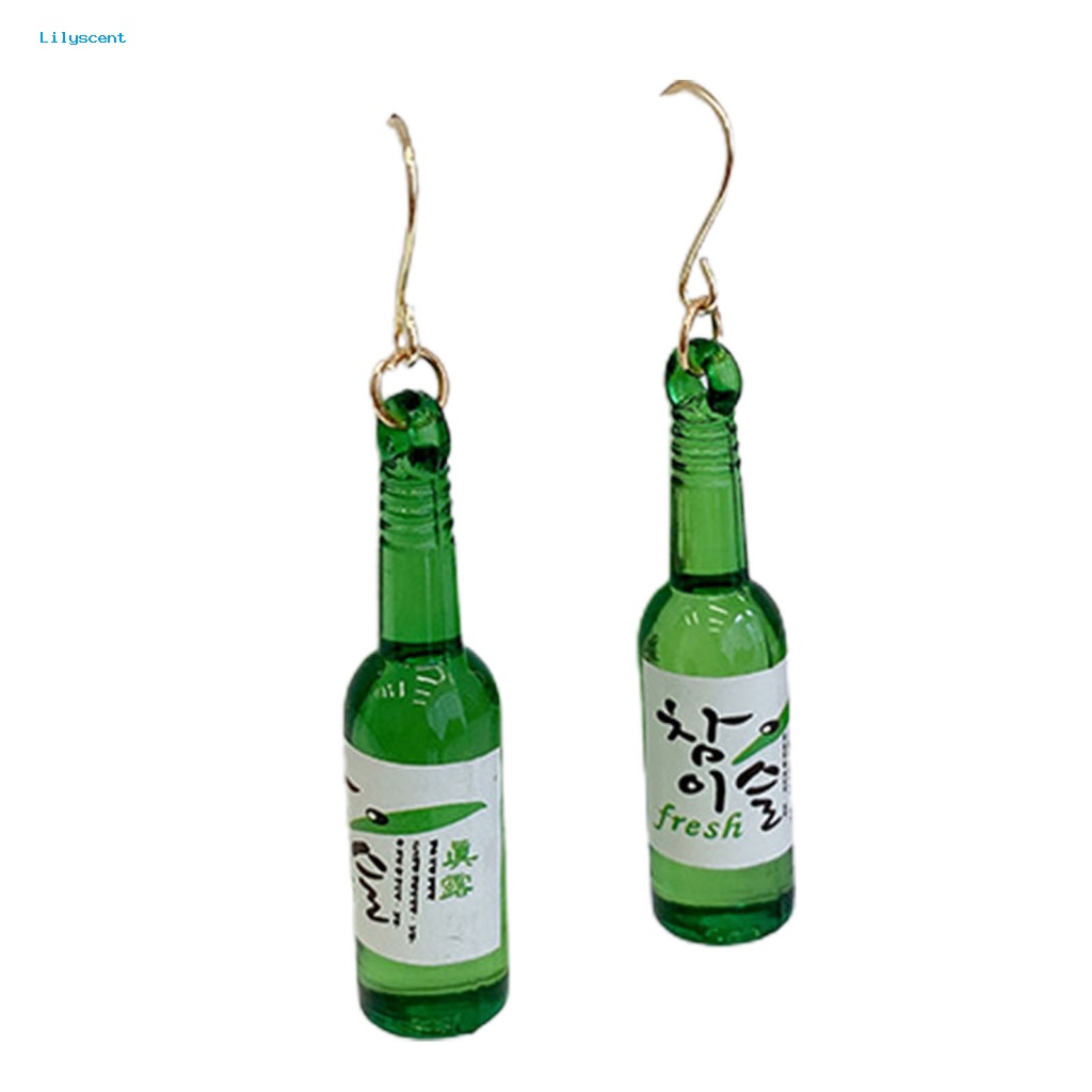 Lilyscent 1pasang Anting Kait Tidak Luntur Pakaian Sehari-Hari Lady Simulasi Botol Bir Drop Menjuntai Anting-Anting Panjang