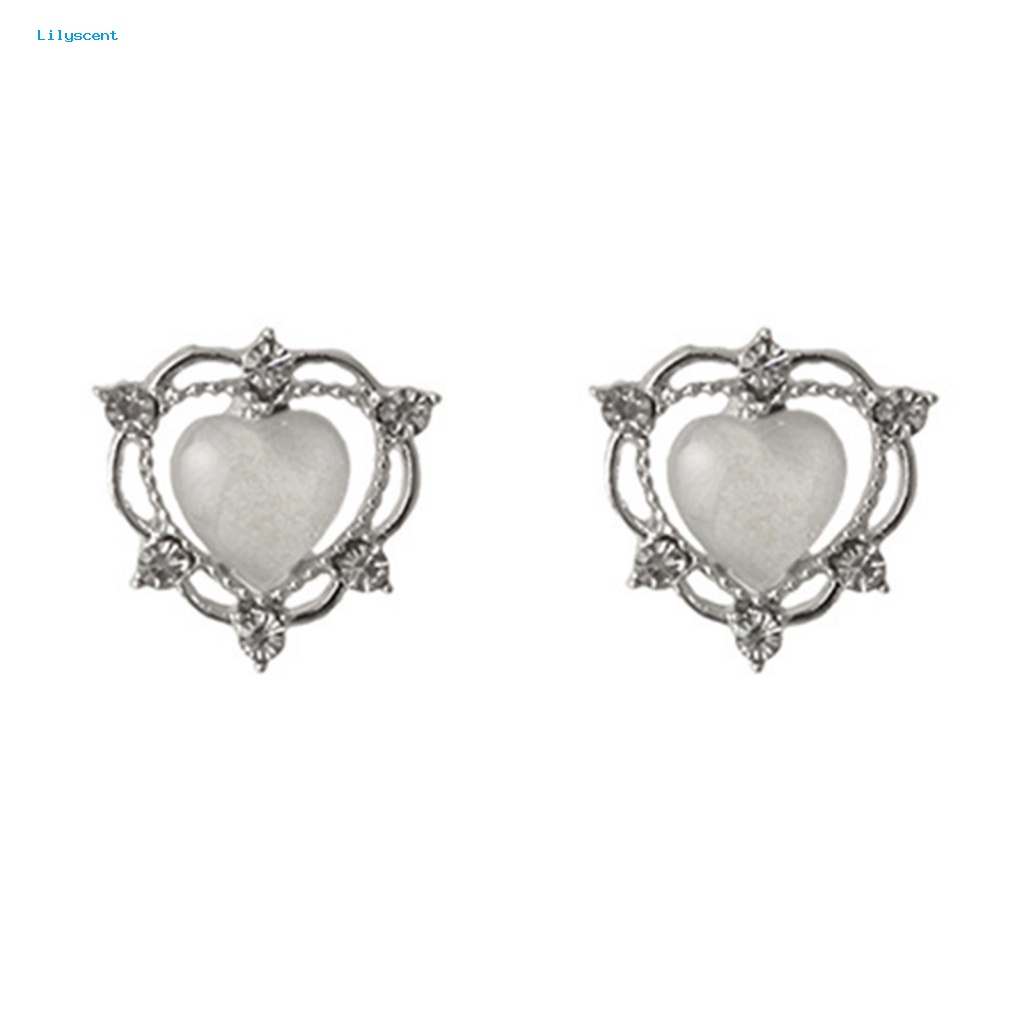 Detail Lilyscent 1pasang Anting Stud Pengerjaan Halus Untuk Pacaran Berlian Imitasi Mengkilap Cinta Hati Kristal Imitasi Wanita Earrings Mini
