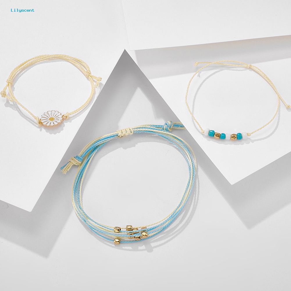 Detail Lilyscent 3Pcs/Set Bohemian Wanita Manik Bunga Pesona Tali Gelang Bangle Perhiasan Hadiah