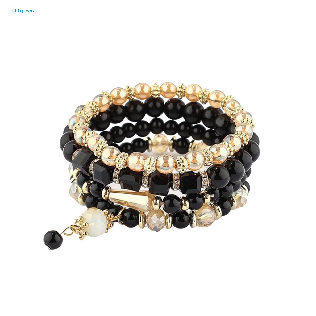 Detail Lilyscent 4Pcs Gelang Chic Elegan Untuk Elastisitas Pantai Empat Lapisan Gelang Manik-Manik
