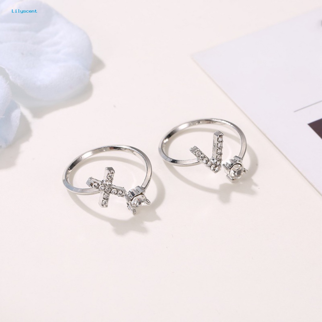 Detail Lilyscent Adjustable A to Z Alfabet Terbuka Cincin Pasangan Pernikahan Band Perhiasan Aksesori Hadiah