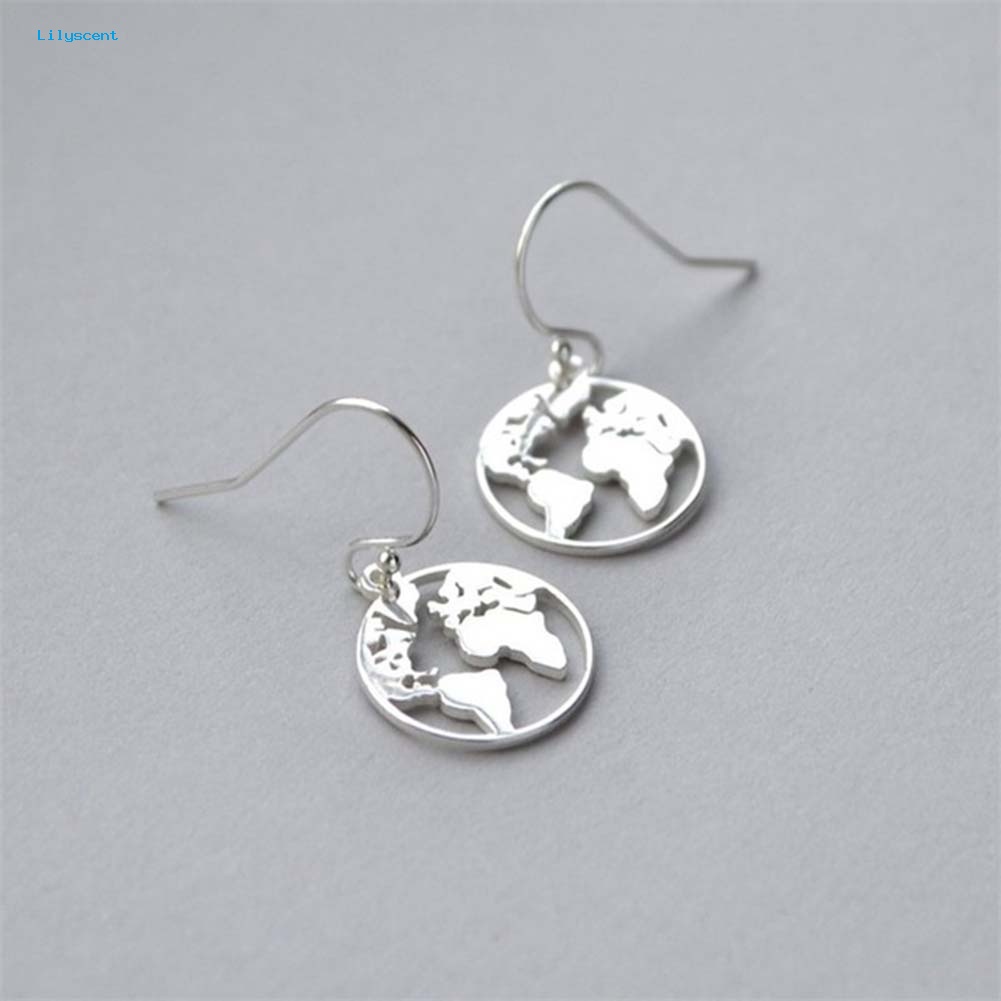 Detail Lilyscent Fashion Wanita Peta Dunia Berongga Bumi Menjuntai Kait Anting Perhiasan Hadiah Natal