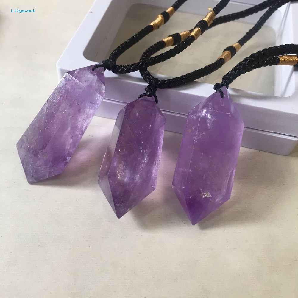 Detail Lilyscent Faux Amethyst Double Terminated Hexagonal Wand Pendant Point Healing Necklace