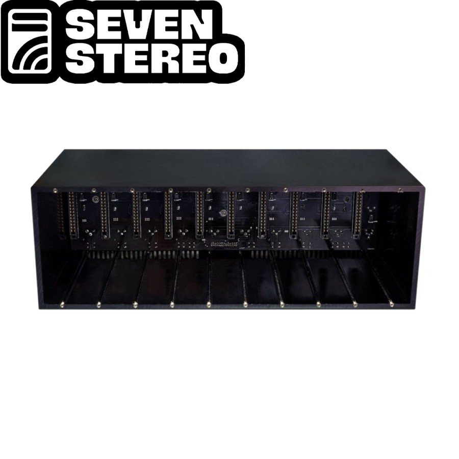 510 Power 500 Series Chassis Features: - 10-slot chassis for 500-series modules - Lightweight aluminum enclosure; steel M3 threads - No-noise, high-frequency switching power supply, 90-250V - Overload and short-circuit protection - Gold-plated XLR inputs and outputs - 500mA of power per slot - 48V phantom power - Power-rail LED indication - Comes with removable rack ears and one blank panel