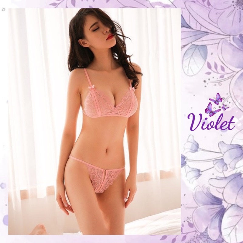 Detail Lingerie Set Bra dan G-String Zamzam Violet 1024 Pakaian Seksi Transparant Pita Bunga Bh Set