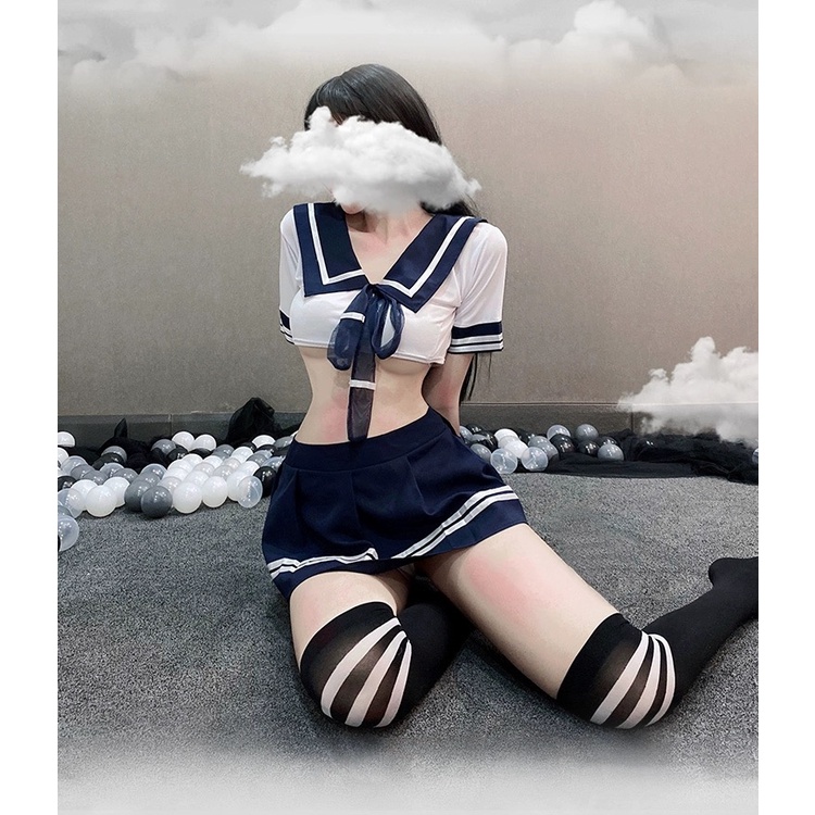 Lingerie Set Kostum Cosplay Seragam Pelajar Sexy Pelaut Untuk Wanita A350