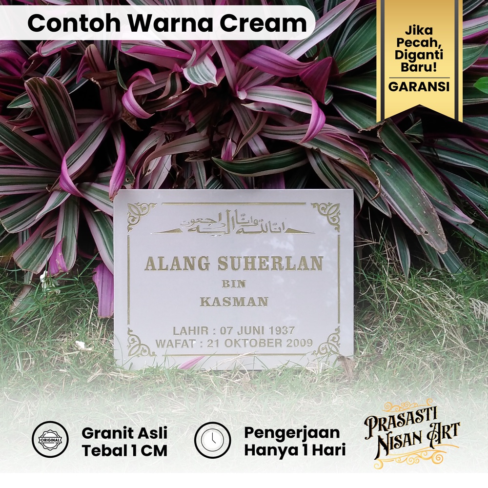 Tulisan Prasasti Batu Nisan berbahan Granit Asli.