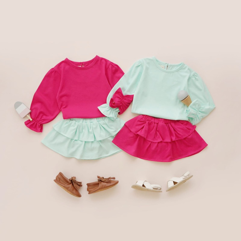 - rok rempel dan didalamnya ada celana dalam ya - bagian belakang baju pakai kancing aktif. - baju berlengan panjang (Bisa ditambahkan legging untuk anak yang memakai hijab)
