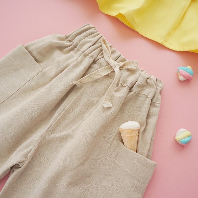 setelan anak perempuan yang elegan sekali ya moms blouse ruffle dengan tali adjustable di bahu & celana panjang