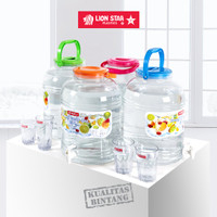Lion Star Galon Air Round Carry Jug 12 liter dilengkapi dengan kran yang sangat praktis untuk digunakan sebagai tempat air mineral maupun minuman lain seperti teh, syrup dan lain sebagainya. Dengan tutup botol yang lebar mempermudah untuk pengisian dan juga untuk membersihkannya : kapoasitas : 12L