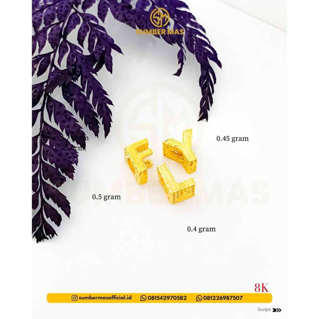 Nama Barang : LIONTIN GELANG ALPHABET FASHION FASHION 8K - SUMBER MAS Berat : 0.4 GRAM - 0.5 GRAM Ukuran : - Variasi : Gold Kadar Emas : 8k (375)