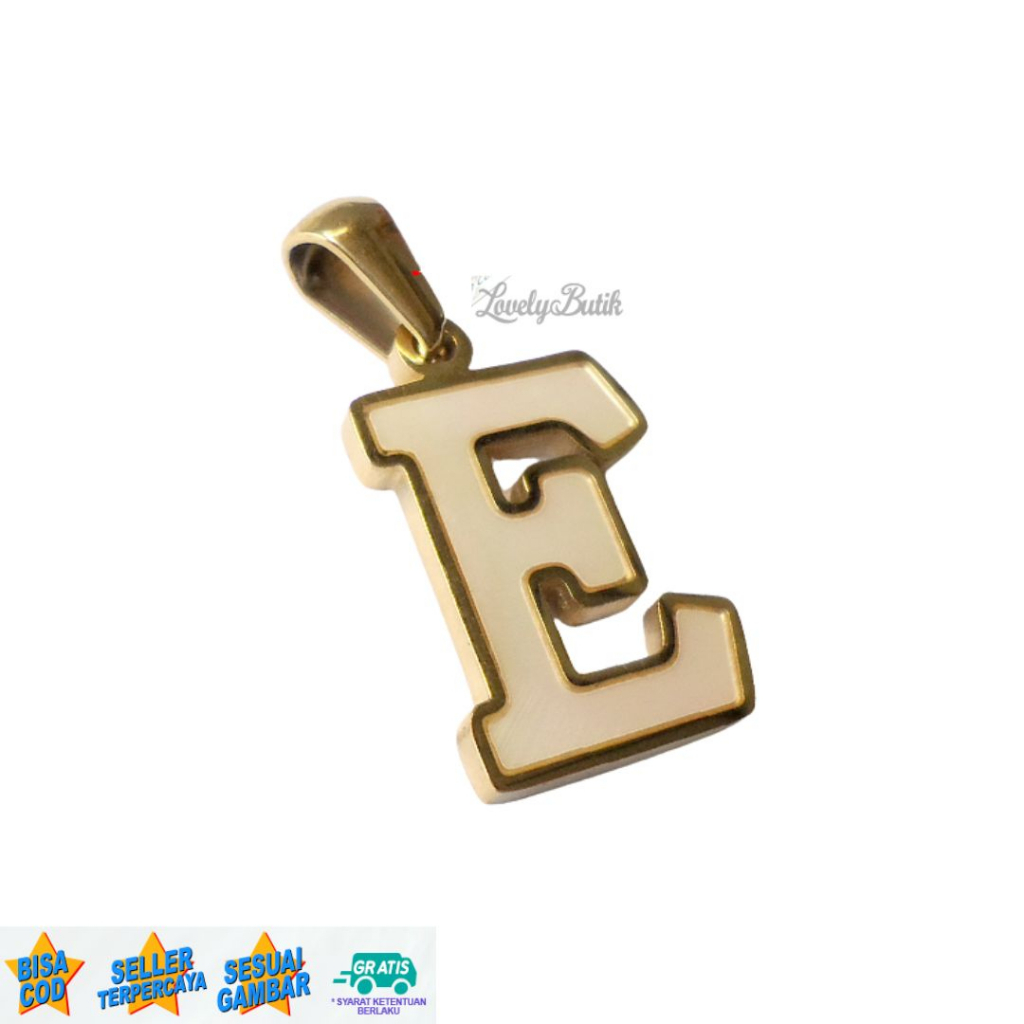 Detail Liontin Titanium Anti Karat Tanpa Kalung Inisial Huruf E,J Liontin Shell Warna Gold - Lovelybutik