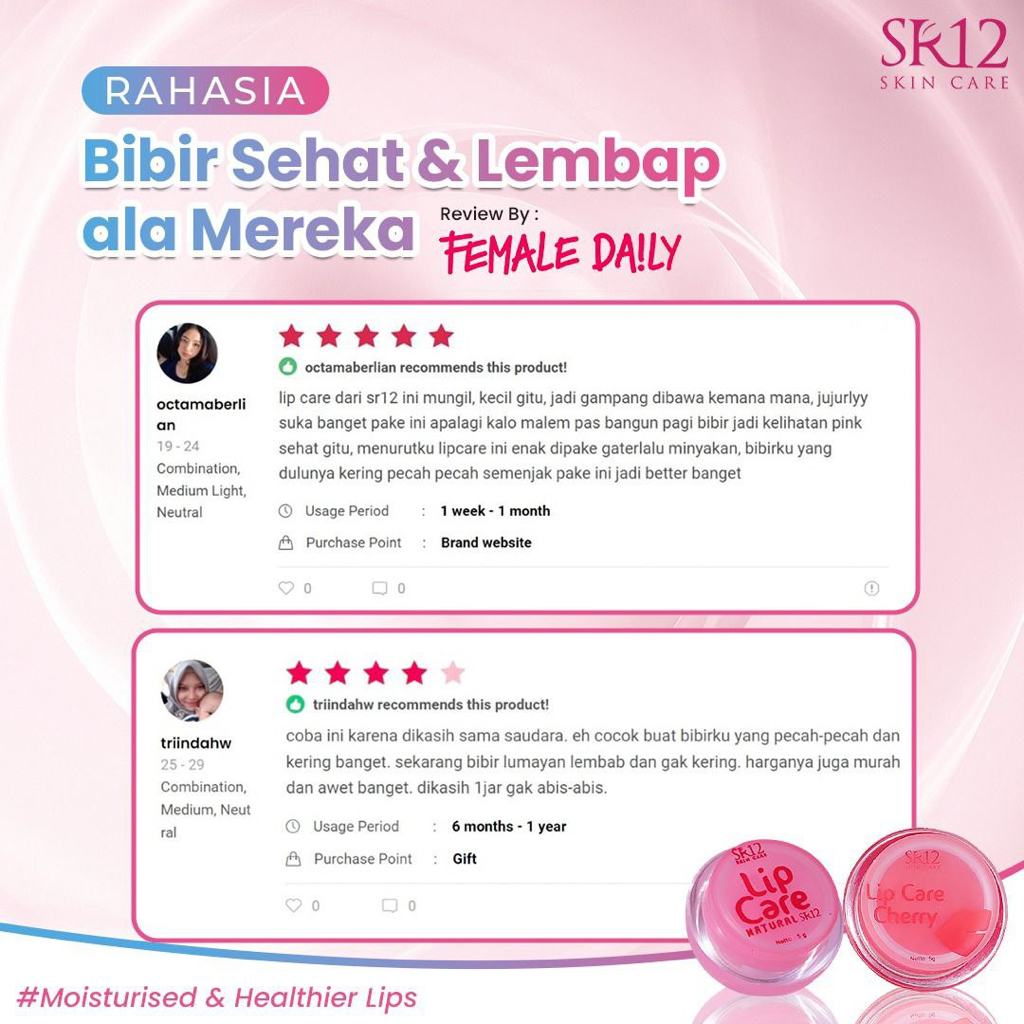 Detail LIP CARE SR12 MERAWAT BIBIR KERING / PELEMBAB BIBIR ALAMI / PENCERAH WARNA BIBIR BPOM