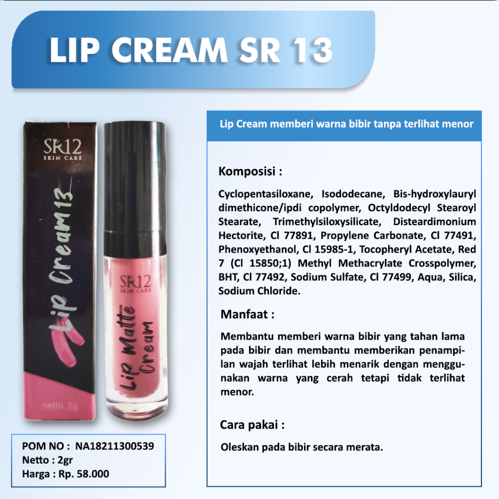 Detail Lip Cream SR12 - Lipstik Tahan Lama & Air / Lip Theraphy Bebas Paraben / Ringan Di Bibir Hasil Warna Yang Lebih Pekat