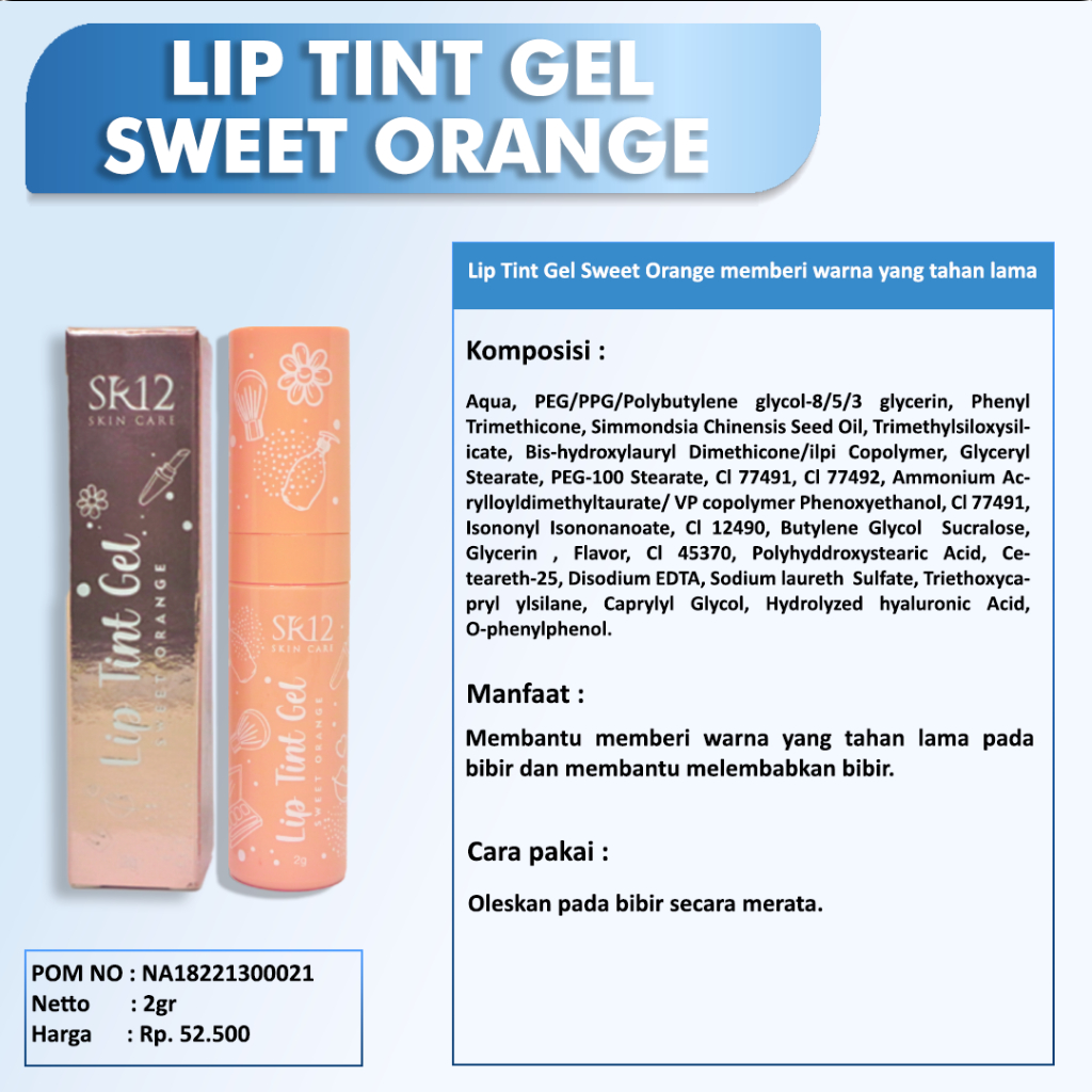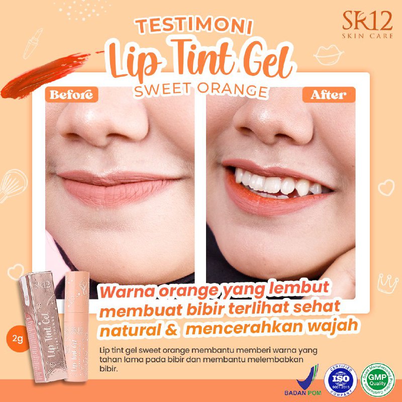 Detail Lip Tint SR12 - Mencegah Bibir Kering & Pecah Pecah Lip Ringan Dipakai Tahan Lama Lipstik Pelembab Tampilan Fresh Natural Pada Bibir
