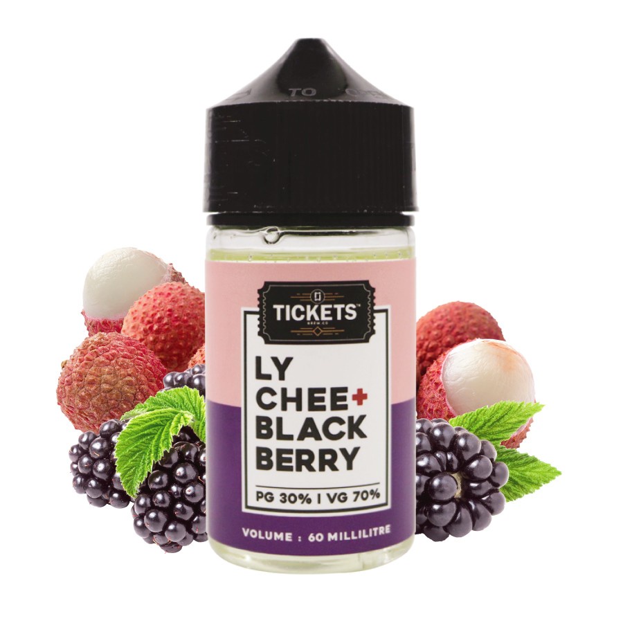 Detail LIQUID TICKETS LYCHEE BLACKBERRY 60ML 3MG FREEBASE BY EJM