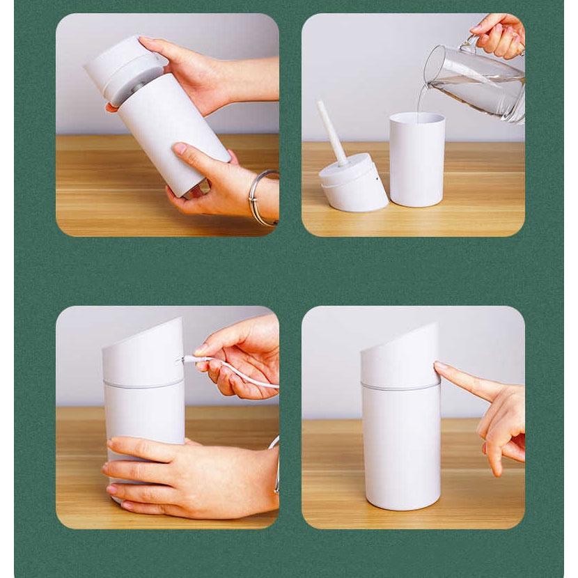 Material ABS & PP Dimension 7.7 x 7.7 x 17.6 cm Others Daya: 2 W Voltase: 5 V Arus: 350 mA Kapasitas Air: 450 ml Kuantitas Penyemprotan: 35 ml/jam