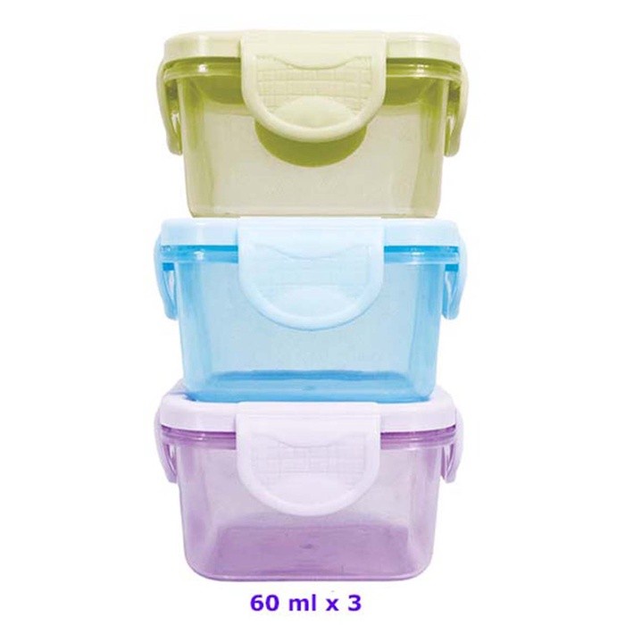 1 set isi 3 kontainer Little Baby dengan 3 warna tutup yang menarik (Hijau, Merah, Kuning)