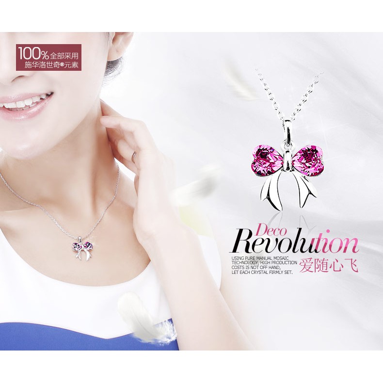 Detail Little Bow Kalung Kristal Swarovski Wanita Cewek Hadiah Kado Ultah Impor Manis Mewah Elegan Pita