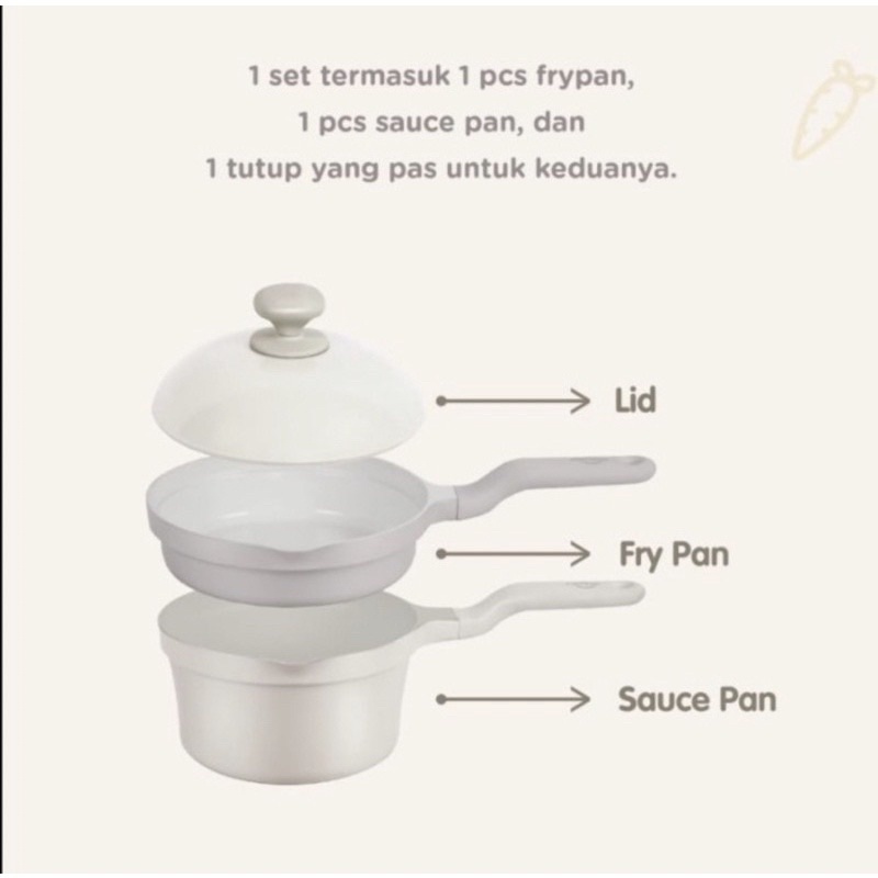Fitur Mini Stack Pan: • ILAG Swiss Ceramic Coating “Xeradur 2” nonstick material. • PTFE , PFOA dan Cadmium Free • Satu set terdiri dari 1 unit frypan, 1 unit saucepan, dan 1 tutup. • Panci dapat ditumpuk sehingga memudahkan penyimpanan • Dapat digunakan di atas berbagai tipe kompor seperti gas, induksi, halogen, dan kompor listrik. • Handle berbahan silicon kualitas tinggi sehingga aman digunakan pada saat memasak. • Bentuk dan warna yang menarik • Diameter 18 cm