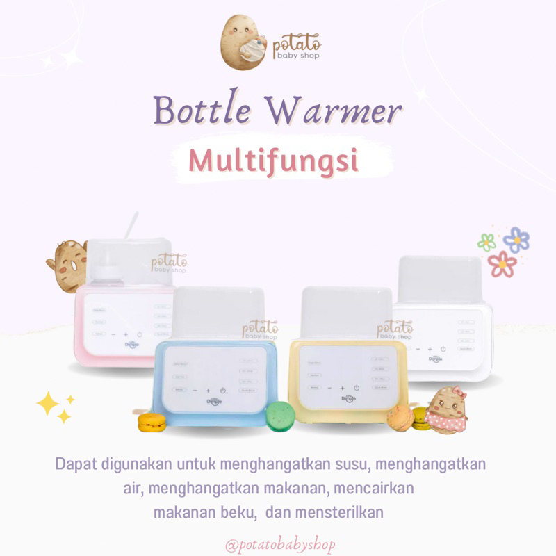 Ibu menyusui yang ingin memberikan asupan terbaik untuk buah hatinya tidak selalu harus menyusui secara langsung. ASI (Air Susu Ibu) dapat diperah kemudian disimpan dengan cara yang benar yaitu disimpan dalam wadah steril yang tertutup rapat kemudian dapat dibekukan. Apabila diperlukan, ASI perah dapat dicairkan setiap saat, namun harus dengan cara yang benar agar tetap terjaga kualitas nutrisinya. Maksimal suhu untuk menghangatkan ASI adalah 40’C dan harus naik secara bertahap. Little Dimple Smart Bottle Warmer hadir memberikan kemudahan untuk ibu. Dengan 4 fungsi utama yaitu Warming, Sterilizing, Reheat, dan Defrost. Menghangatkan kembali ASIp, sterilisasi botol susu, dan juga dapat berfungsi untuk mencairkan (defrost) bahan makanan hanya dalam 1 alat. Jadikan waktu menyusui lebih mudah dan praktis untuk ibu dan bayi. • Menghangatkan susu dengan cepat dan merata tanpa merusak kandungan nutrisi • Suhu dapat diatur sesuai kebutuhan sehingga menghindari panas yang berlebih ataupun kekurangan panas • Layar sentuh dengan tampilan digital untuk penggunaan yang lebih mudah dan efisien • Layar dapat menyala untuk memudahkan penggunaan di malam hari • Mesin akan mati secara otomatis jika proses pemanasan atau sterilisasi telah selesai • Pengoperasian yang sederhana dan mudah, bahkan dengan satu tangan • Cocok untuk segala jenis botol, seperti botol ‘bermulut lebar’, botol berbentuk persegi, ‘angled bottle’, dsb. • Hemat waktu, tenaga, dan daya • Food grade, menggunakan bahan yang dapat didaur ulang • Anti-dry protection, mesin akan mati secara otomatis apabila air dalam unit habis