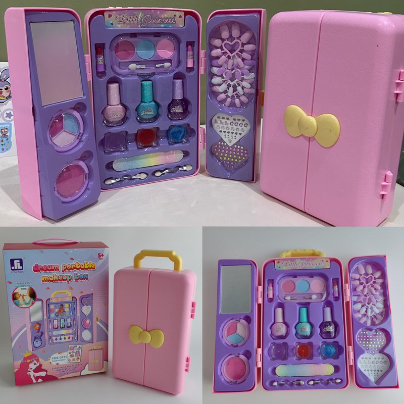 Detail little girl portable make up box tas mainan make up anak pretend plays