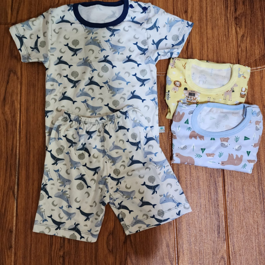 Detail LITTLE OWL Setelan Kancing Bahu oblong pendek