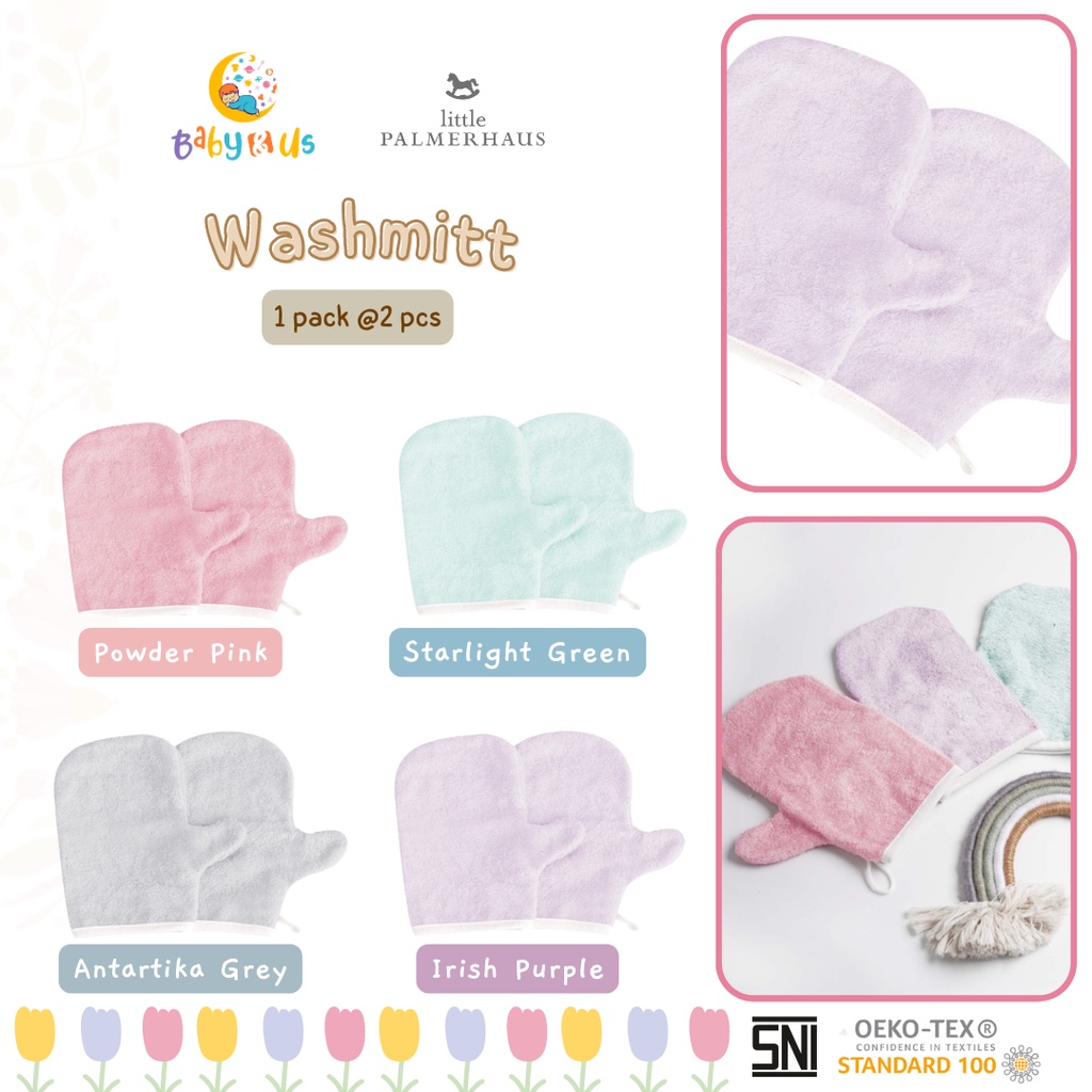 Bam & Boo Bamboo Washmitt 1 Pack isi 2 by Little Palmerhaus Deskripsi: - Bahan : Bamboo Cotton - Warna : Dusty Blush, Powder Pink, Peach Blush, Ocean, Aqua Blue, Ice Blue - ANTIBACTERIAL PROTECTION - ULTRA SOFT - ESSENTIAL FOR BABY'S SENSITIVE SKIN - HAND FITS COMFORTABLE INSIDE - USE ONE OR TWO ON BOTH HANDS FOR EASY WASHING - MACHINE WASHABLE - SEWN IN LOOP FOR HANGING OR SIMPLY HANGOVER FACET FOR QUICK HYGIENIC AIR DRYING