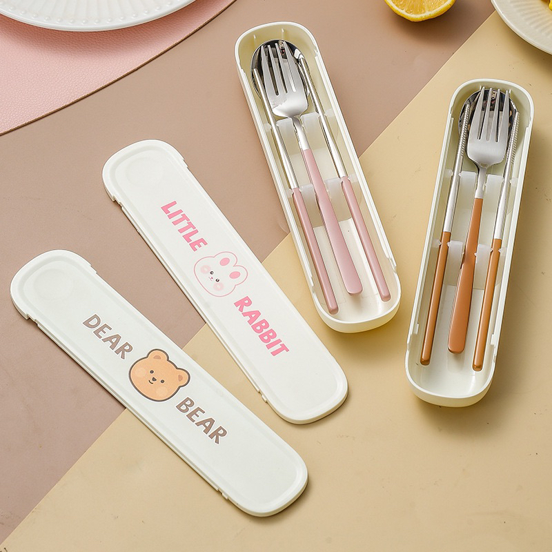 CAMBRIE CUTLERY SET 3IN1 MOTIF : BEAR & RABBIT Bahan : 304 Stainless Anti Karat