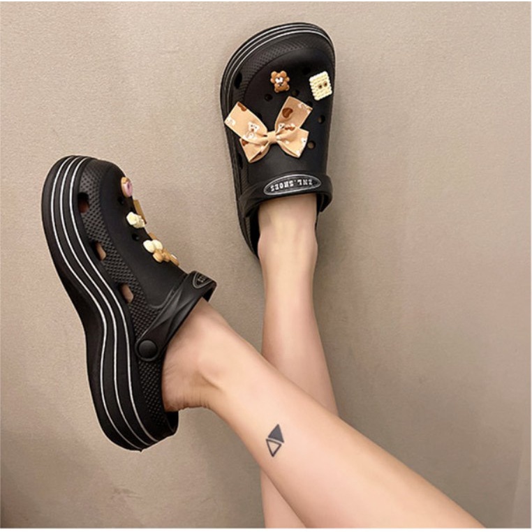 Detail littlekiddoss SH2240 Sendal Selop Wedges Wanita Import Sandal Clog EVA Tebal 5cm Jiblitz BKK Sendal Fuji Kekinian Sendal Baim Clog Wanita